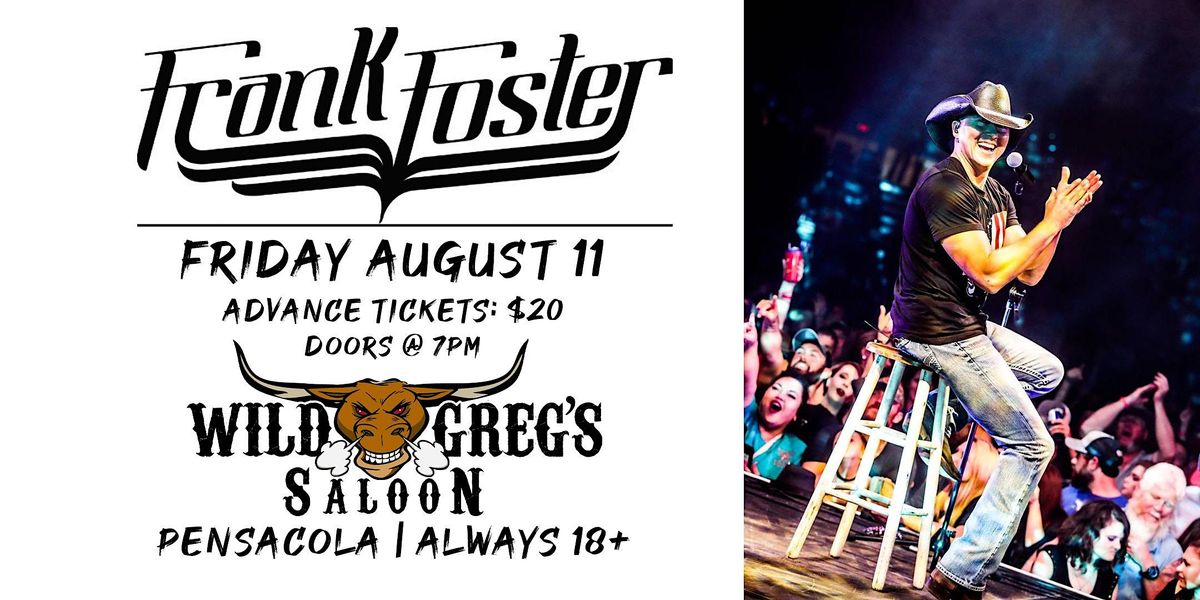 Frank Foster live in concert, Wild Greg's Saloon, Pensacola, August 11, Dusty armadillo ยท rootstown, oh. Mar 16, 2025 sat 8:00 pm.